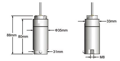 低频型:速度20mV/(mm.s-1);位移8mV/μm或5 mV/μm