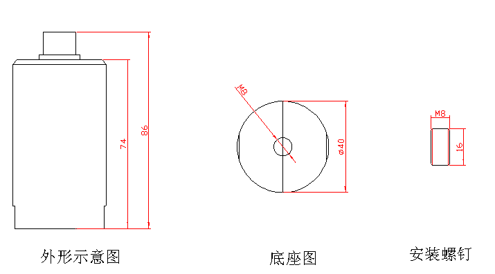 φ40mm×88mm;φ58mm×100mm(带LCD显示) |