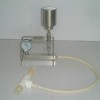 2.将滤器接杆上的橡胶塞,插入不锈钢底座,滤器的多小孔平面上装上浸泡的滤膜,放上不锈钢滤器倒入水样至相应刻线,便可行抽滤。